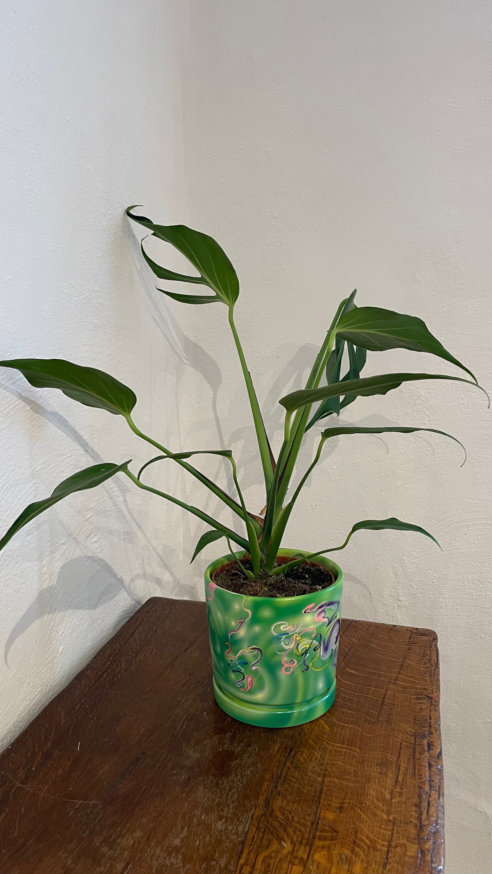 This charming hand-painted pot blends artisanal character with a clean, timeless silhouette—perfect for showcasing your rare tropicals, cuttings, or treasured seedlings. Each piece is individually painted, giving every pot its own subtle variations and personality, turning it into both a functional planter and a decorative accent for any shelf, desk, or greenhouse setup.